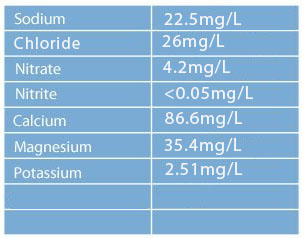 The spring rises from 60 metres underground and is bottled on site using modern, hygienic technology to preserve its fresh, delicately sweet taste.